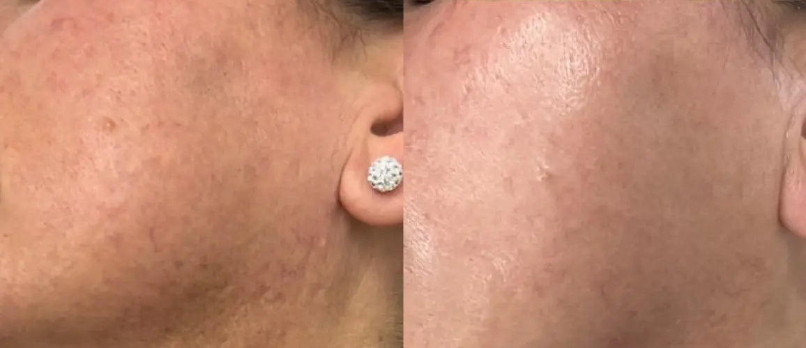 After treatment, the skin may be red and sensitive for a few days. It is recommended to avoid direct sun exposure and follow the post-treatment care instructions.